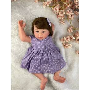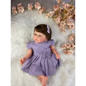 Bem-vindo(a) à nossa loja! É um prazer tê-lo(a) aqui conosco.Nossa equipe está comprometida em oferecer produtos de qualidade, atendimento personalizado e uma experiência de compra segura e confortável.Agradecemos sua visita e esperamos vê-lo(a) novamente em breve! Brincar com boneca ajuda a desenvolver a criatividade, a imaginação e a confiança das crianças.Portanto, presentear com um dos nossos bebês é, antes de tudo, um ato de amor! \n DESCUBRA A EXCELÊNCIA: SEU BEBÊ REBORN REALISTA, FEITO À MÃO POR ARTISTAS TALENTOSOS! PRODUTO TOTALMENTE ARTESANAL – autêntico Descrição do Produto: · Corpinho: Vinil Siliconado · Membros: Vinil siliconado · Olhos: Azul profundos · Peso: Aproximadamente 1,8 kg · Medida: 48 cm · Cabelo: Castanhos · Pintura: Técnica reborn de última geração, com detalhes realistas como manchinhas arroxeadas, veias aparentes, marquinha de vacina, unhas francesinha e manchinhas de frio. \n O que acompanha a boneca: (A roupinha varia conforme o estoque.) 1 Vestido 1 Par de sapatinhos 1 Laço2 Fraldas1 Chupeta magnética e 1 mamadeira1 Receitinha de leite falso para brincar1 Certidão de nascimento1 Teste do pezinho1 Manual de cuidados1 Carteira de vacinação1 Ultrassom do bebê1 Passaporte1 Certificado de autenticidade Tudo muito bem embalado para garantir que seu bebê chegue com todo o cuidado e carinho. Qualquer outro objeto exibido nas fotos, mas não listado acima, é meramente ilustrativo e não acompanha a boneca. \n Toque de Realidade: Nossos bebês são confeccionados com o mais alto padrão de qualidade em vinil siliconado. Os olhos azuis brilhantes garantem uma aparência encantadora e realista. Peso de 1,8 kg e medida de 48 cm – como um bebê de verdade!Ao segurá-la, você sentirá o peso reconfortante de um recém-nascido, tornando cada momento de interação uma experiência genuína. Cada detalhe da técnica reborn transforma a boneca em uma obra de arte apaixonante! \n Perguntas Frequentes: Ela pode tomar banho? Sim! Posso pentear o cabelo? Sim, pode pentear com cuidado. Tem ? Sim, todos os nossos modelos estão disponíveis para envio expresso. Posso trocar a cor do cabelo ou dos olhos? Sim, desde que o anúncio não seja categorizado como Full. Após a compra, envie uma mensagem solicitando a alteração. · Cores de cabelo disponíveis: Castanho, loiro, ruivo e preto. · Cores de olhos disponíveis: Azuis, castanhos e verdes. Qual o material do cabelo? Fibra Beautex, de excelente qualidade. Qual o tamanho da roupinha? Tamanho RN ou P. \n Garanta já o seu bebê reborn e proporcione momentos de carinho, imaginação e afeto! Se quiser mais algum ajuste ou um toque mais comercial, é só avisar!