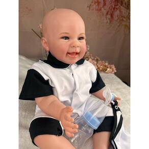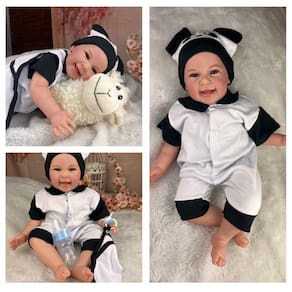 Nossos bebês são confeccionados com o mais alto padrão de qualidade em vinil siliconado. Os olhos azuis brilhantes garantem uma aparência encantadora e realista.