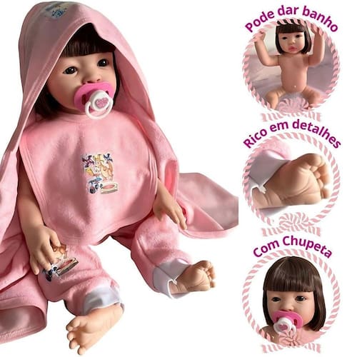 As crianças vão se encantar com nossa Bebê Lia, ela é linda, corpo em silicone de alta qualidade, detalhes pensados para ficar idêntica a um bebê de verdade. Pode dar banho