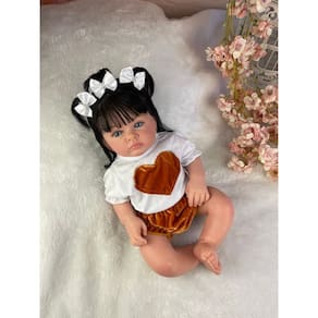 Bem-vindo(a) à nossa loja! É um prazer tê-lo(a) aqui conosco.Nossa equipe está comprometida em oferecer produtos de qualidade, atendimento personalizado e uma experiência de compra segura e confortável.Agradecemos sua visita e esperamos vê-lo(a) novamente em breve! Brincar com boneca ajuda a desenvolver a criatividade, a imaginação e a confiança das crianças.Portanto, presentear com um dos nossos bebês é, antes de tudo, um ato de amor! \n DESCUBRA A EXCELÊNCIA: SEU BEBÊ REBORN REALISTA, FEITO À MÃO POR ARTISTAS TALENTOSOS! PRODUTO TOTALMENTE ARTESANAL – autêntico Descrição do Produto: · Corpinho: Tecido Macio · Membros: Vinil siliconado · Olhos: Azuis profundos · Peso: Aproximadamente 1,8 kg · Medida: 48 cm · Cabelo: Preto · Pintura: Técnica reborn de última geração, com detalhes realistas como manchinhas arroxeadas, veias aparentes, marquinha de vacina, unhas francesinha e manchinhas de frio. \n O que acompanha a boneca: (A roupinha varia conforme o estoque.) 1 Body 1 Short 1 Par de sapatinhos 1 Laço2 Fraldas 1 Pente 1 Escova1 Chupeta magnética e 1 mamadeira1 Receitinha de leite falso para brincar1 Certidão de nascimento1 Teste do pezinho1 Manual de cuidados1 Carteira de vacinação1 Ultrassom do bebê1 Passaporte1 Certificado de autenticidade Tudo muito bem embalado para garantir que seu bebê chegue com todo o cuidado e carinho. Qualquer outro objeto exibido nas fotos, mas não listado acima, é meramente ilustrativo e não acompanha a boneca. \n Toque de Realidade: Nossos bebês são confeccionados com o mais alto padrão de qualidade em vinil siliconado e tecido macio. Os olhos azuis brilhantes garantem uma aparência encantadora e realista. Peso de 1,8 kg e medida de 48 cm – como um bebê de verdade!Ao segurá-la, você sentirá o peso reconfortante de um recém-nascido, tornando cada momento de interação uma experiência genuína. Cada detalhe da técnica reborn transforma a boneca em uma obra de arte apaixonante! \n Perguntas Frequentes: Ela pode tomar banho? Não! Pois o corpinho é em tecido. Posso pentear o cabelo?Sim, pode pentear com cuidado. Tem ?Sim, todos os nossos modelos estão disponíveis para envio expresso. Posso trocar a cor do cabelo ou dos olhos?Sim, desde que o anúncio não seja categorizado como Full. Após a compra, envie uma mensagem solicitando a alteração. · Cores de cabelo disponíveis: Castanho, loiro, ruivo e preto. · Cores de olhos disponíveis: Azuis, castanhos e verdes. Qual o material do cabelo?Fibra Beautex, de excelente qualidade. Qual o tamanho da roupinha?Tamanho RN ou P. \nGaranta já o seu bebê reborn e proporcione momentos de carinho, imaginação e afeto! Se quiser mais algum ajuste ou um toque mais comercial, é só avisar!