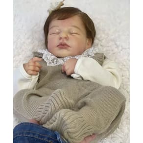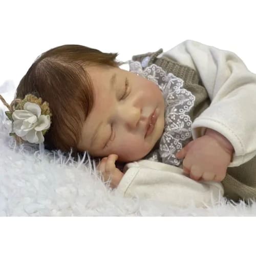 Corpo: Em tecido suede muito macio. Olhos: Dormindo Fechados Cabelo fio a fio monhair premium Peso: Aproximadamente 2 kg Membros vinil silicone Pintura: Aplicada toda a técnica Reborn, pintura 3D manchinhas arroxeadas, manchinhas de frio, veias aparentes, unhas francesinhas, marquinha de vacina e marquinha do teste do pezinho.