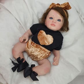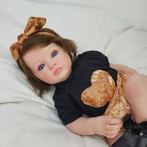 Nossos produtos são atóxicos, colecionáveis. artesanais e exclusivos. Cada detalhe é feito a mão e embalados com carinho para chegar até você com qualidade. Todos os membros são de vinil siliconado, com dobrinhas, marquinha de vacina, veinhas, manchinhas de frio, cílios, cheirinho e peso de um bebê de verdade. Ela pode sentar, deitar, levantar os bracinhos.