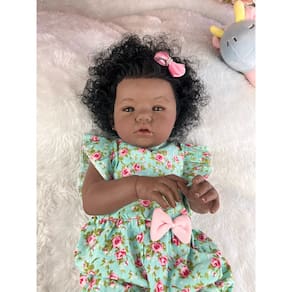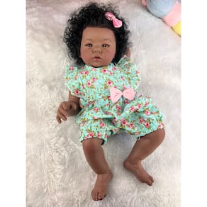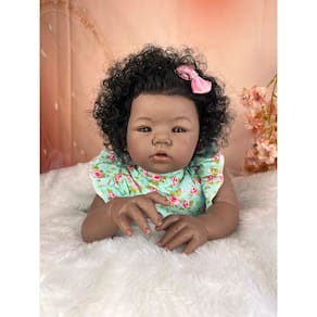 Nossos bebês são confeccionados com o mais alto padrão de qualidade em vinil siliconado e tecido macio. Os olhos castanhos brilhantes garantem uma aparência encantadora e realista.