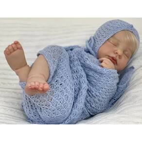 Realismo: Olhos fechados, cabelo e cílios implantados fio a fio. Pintura técnica reborn com manchinhas, veias, unhas e marquinhas de vacina/teste do pezinho. Possui um suave cheirinho de bebê.