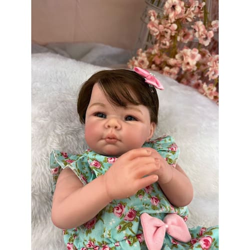 Toque de Realidade: Nossos bebês são confeccionados com o mais alto padrão de qualidade em vinil siliconado e tecido macio. Os olhos azuis brilhantes garantem uma aparência encantadora e realista. Peso de 1,8 kg e medida de 48 cm – como um bebê de verdade!Ao segurá-la, você sentirá o peso reconfortante de um recém-nascido, tornando cada momento de interação uma experiência genuína. Cada detalhe da técnica reborn transforma a boneca em uma obra de arte apaixonante!