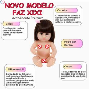 Nós da Sweetie Reborn Brasil ® apresentamos a nossa adorável Boneca Bebê Reborn, agora com a incrível funcionalidade de fazer xixi! Confeccionada em vinil com acabamento de Silicone-doll, proporciona um toque único e sem cheiro. Ela possui 38 cm e 670 gramas, sendo perfeita para crianças a partir de 3 anos. Totalmente segura e certificada pelo INMETRO 002 552/2022, 100% aprovada nos ensaios físicos/mecânicos, químicos e livre de Ftalato!