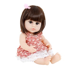 Seu cabelo de Kanekalon é costurado à mão, muito macio, lavável e tão realista que parece de verdade. Seus olhos acrílicos de alta qualidade têm uma cor castanha encantadora, embora não se fechem ou pisquem. Este conjunto inclui um vestido, calcinha, presilha de cabelo e meia.