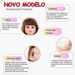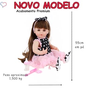 Nós da Sweetie Reborn Brasil ® apresentamos a nossa nova e adorável Bebê Reborn, confeccionada em vinil com finish de Silicone-doll, proporcionando um toque único e sem cheiro. Ela possui 55cm e 1,400 kg, sendo perfeita para crianças a partir de 3 anos. Totalmente segura e com certificação do INMETRO, número de registro 014594/2024 100% APROVADA nos ensaios físicos/mecânicos, químicos e livre de Ftalato! Seu cabelo de Kanelon, é costurado à mão, muito macio, lavável e tão realista que parece de verdade. Seus olhos acrílicos de alta qualidade têm uma cor castanha encantadora, embora não se fechem ou pisquem. Este conjunto encantador inclui um vestido de bailarina e sapatilha. Além disso, vem com acessórios adoráveis, como um laço de cabelo, chupeta, mamadeira de brinquedo, pente, fralda e até uma certidão de nascimento!