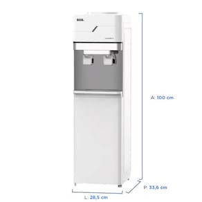 Marca EOS Modelo EBC01BCA Tipo Bebedouro com Armário Temperatura de operação Natural e gelada Capacidade do reservatório 3,5 litros Compressor Gás R600a Bandeja removível Sim Torneira Sim Instalação Piso Tamanho do garrafão 10 e 20 litros Altura 100 cm Largura 28,5 cm Profundidade 33,6 cm Peso 11,8 kg Frequência 60 Hz