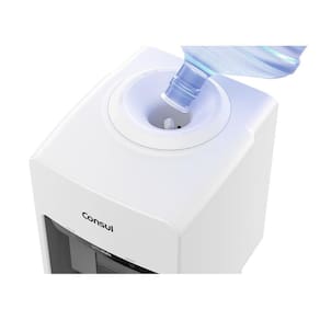 Bebedouro Consul Gela Mais Mesa Branco Natural/Frio 127V CJD42ABANAPara todos aqueles que procuram uma maneira de ter água gelada e ainda economizar energia, a Consul traz o Bebedouro Gela Mais CJD42B.Sua tecnologia de refrigeração eletrônica conta com o melhor desempenho em consumo de energia, podendo receber galões de até 20 litros. Traz a possibilidade de duas temperaturas, podendo ser natural ou gelada, facilitando no dia a dia e até mesmo em preparos de receitas onde você precisa de água mineral. Seu motor conta com refrigeração por compressor, trazendo muito mais eficiência ao usuário.Com design robusto e moderno, esse bebedouro deixará sua cozinha ainda mais bonita. Sua utilização é fácil e intuitiva, contando com dois botões para a seleção de temperatura e ainda conta com bandeja removível para caso de derramamento e alças laterais. Tudo isso agregado a um produto prático e fácil de limpar.A troca do garrafão se torna cada vez mais simples pois com esse modelo você não precisa retirar a tampa e correr o risco de molhar tudo ao redor, ele conta com que permite que você tenha muito menos trabalho.Especificações Técnicas:- Marca: Consul- Modelo: CJD42ABANA- Voltagem: 127V - Tipo: Bebedouro de Bancada- Cor: Branco- Capacidade: Galão de 20 Litros- Potência: 120W- Consumo Aproximado de Energia: 10.5kWh- Corrente: 1.4V- Frequência: 60Hz- Plugue e Tomada: 10 A- Níveis de Temperatura: 2- Material de Fabricação: ABS, Poliacetal, Silicone, Polietileno e Polipropileno- Tipo de Regrigeração: Compressor- Furador: Sim- Bandeja Removível: Sim- Alças Laterais: Sim- Quantidade de Água Gelada em uma Hora: 2l/h- Bica Móvel: Não- Tipo de Acionamento: Mecânico- Vazão: 40 a 60l/h- Temperatura de Operação: 10 a 43º- Itens Inclusos na Embalagem: 01 Bebedouro de água refrigerado Consul; 01 bandeja coletora; 01 manual de instruções- Dimensões do Produto (LxAxP): 29.8 x 47.2 x 43.9 cm- Dimensões da Embalagem (LxAxP): 35.7 x 40.5 x 38 cm- Peso Líquido: 11.6kg- Peso Bruto: 13kg- Garantia: 12 meses