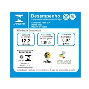 Informações Adicionais do produto: Ecocompressor: com gás R134a que não agride o meio ambiente Easy Clean: desmontável para higienização Serpentina externa: fácil higienização Grande vazão: copo cheio em poucos segundos Torneira Up Down Gabinete com proteção UV: evita que as partes brancas do purificador fiquem amareladas com o tempo** Para ambientes internos e áreas abertas externas (como áreas gourmet, lavanderias, etc) Acomoda Garrafão: 10 e 20 litros Volume Interno do Aparelho: 2 litros Capacidade de Fornecimento de Água: Gelada (L/h)*: 1,28 Temperatura de Resfriamento: 10° C / 50° F Vazão Mínima por Gravidade (L/h): 96 L/h Uso Residencial Uso Comercial Eficiência Energética: Grau de Proteção: IPX4 Amperagem (A: 1,5 / 0,7 Potência: 90W Frequência - Mercado Nacional: 60Hz Consumo de Energia: 12,2 (kWh/mês) Eficiência Energética (kW/L) 0,07