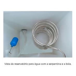 - Irá instalada, dentro do depósito para água, uma serpentina por modelo, confeccionada em tubo de cobre, com revestimento em pintura a pó eletrostática, na cor branca;