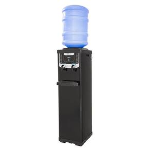 Bebedouro de coluna com refrigeração por compressor, suporta garrafões de 10 e 20 litros, oferece água natural e gelada, controle de temperatura por termostato.Água gelada