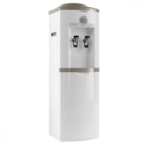 Bebedouro de coluna com refrigeração por compressor, termostato frontal com controle gradual de temperatura, sistema Easy Open removível, alças laterais e aparador de água removível., Bebedouro de coluna com refrigeração por compressor, termostato frontal com controle gradual de temperatura, sistema Easy Open removível, alças laterais e aparador de água removível.Água gelada