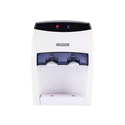Bebedouro eletrônico Agratto bivolt com sistema de resfriamento peltier, duas torneiras (água gelada e natural), bandeja coletora removível e fura tampa. Ideal para garrafões de 10 ou 20 litros.Água gelada