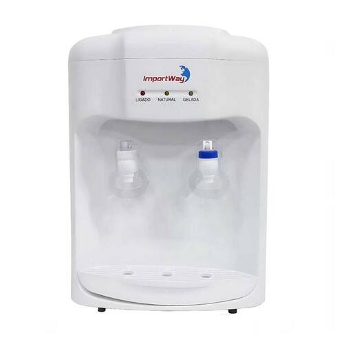 Bebedouro eletrônico com potência de 65W, ideal para uso em mesa ou bancada. Refrigeração por placa eletrônica, para galões de 10 e 20 litros. Possui coletor de pingos removível.Água gelada