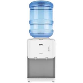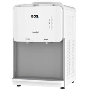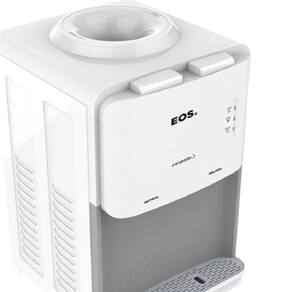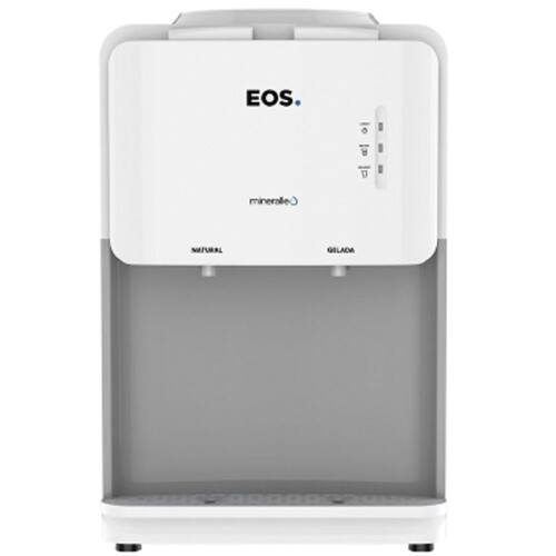 Bebedouro de mesa EOS Mineralle compacto com compressor, acomoda garrafões de 10 ou 20 litros, sistema anti-vibração, LEDs indicadores de funcionamento e bandeja removível.Água gelada