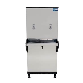 Bebedouro industrial de coluna Knox com capacidade de 50 litros, 2 torneiras para água gelada, estrutura em inox, sistema de refrigeração eficiente e design moderno. Ideal para ambientes de grande circulação.Água gelada