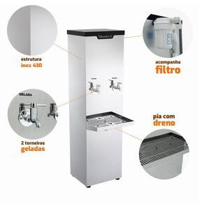 Projetado para oferecer praticidade e desempenho, o BI25L conta com termostato de 7 níveis, permitindo a regulagem ideal da temperatura da água. A serpentina interna em aço inox 304 e o filtro de 5 garantem água pura e segura para consumo, enquanto os pés com regulagem de altura facilitam a instalação em qualquer ambiente. Se você procura um bebedouro robusto, com alta capacidade e fácil manutenção, o BI25L da Venâncio é a escolha certa.