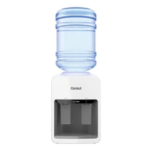 Bebedouro Gela Mais Motor Compressor Cjd42Ab Branco 220V - ConsulO Bebedouro Gela Mais é para quem gosta de muuuita água gelada. Graças ao seu motor de compressor, possui alta capacidade de gelar a água para você e sua família. Ele é ideal para galões de 20L e possui duas temperaturas de água: natural e gelada. O fura-galão, alças laterais e bandeja removível, facilitam seu dia-a-dia. 2 níveis de temperatura Bem pensado é poder escolher entre duas temperaturas diferentes, natural ou gelada, facilitando o seu dia a dia até nas escolhas mais simples Muito fácil de usar Para beber água é muito fácil: basta pressionar os acionadores e pronto.A água sai na temperatura do seu jeito. Além disso, a bandeja removível e as alças laterais ajudam na limpeza do dia-a-dia. Sua cozinha mais bonita O design atrativo do Bebedouro Gela Mais deixa o seu ambiente ainda mais bonito Trocar o garrafão é super simples O furador do bebedouro deixa a troca do galão muito mais simples. Com ele você não precisa mais retirar a tampa e correr o risco de molhar tudo ao redor. É só virar o galão e pronto Motor de CompressorÉ o mesmo motor usado em geladeiras, é muito mais eficiente e tem uma durabilidade muitíssimo maior que o de Placa EletrônicaMedidas aproximadas do produto- Comprimento: 40 cm- Altura: 46 cm- Largura: 43 cm- Peso: 11000 g