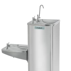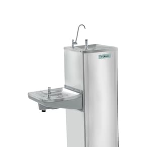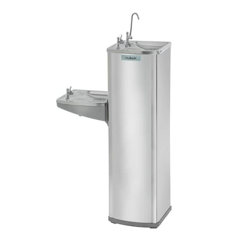 Bebedouro de coluna Libell Press Star Side Inox com tripla filtragem, refrigeração por compressor, controlador de temperatura (4 a 15ºC), e capacidade de resfriamento de 6 l/h.Água gelada