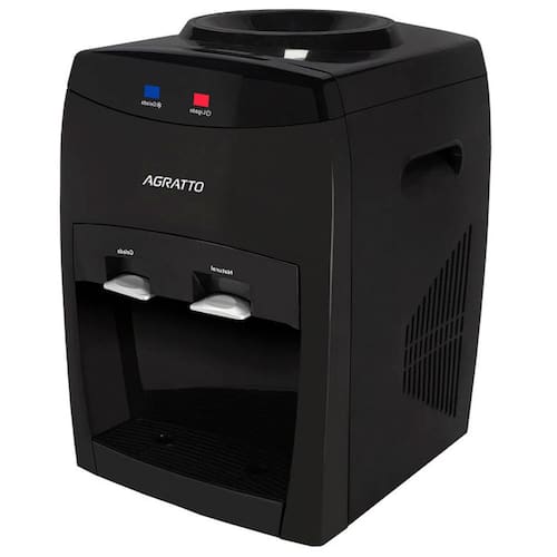 Bebedouro refrigerado eletrônico Agratto bivolt, com capacidade para galões de 10 a 20 litros, refrigeração eletrônica, duas torneiras (água natural e gelada) e bandeja coletora removível. Ideal para uso doméstico.Água gelada