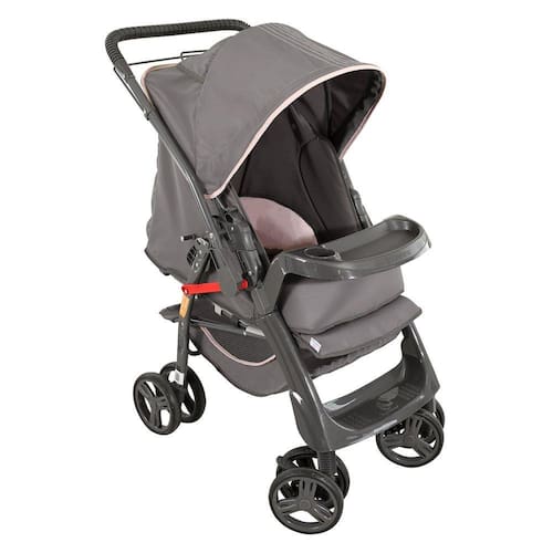 Produto Nacional; Carro berço- passeio destinado para crianças a partir de 0 meses com peso até 15 kg; Estrutura em Aço; Tecido removível e lavável; Encosto regulável em 4 posições; Cabo reversível; Cinto de segurança 5 pontos; Bolso traseiro; Bolso nas laterais; Protetor de ombro; Acolchoado dupla face; Bandeja do bebê com porta copos, removível e fácil encaixe; 4 Rodas dianteiras giratórias com duplo sistema de freio; Eixos dianteiros removíveis; 4 Rodas traseiras com duplo sistema de freio; Eixos traseiros removíveis; Capota removível e retrátil; Capota com teto solar; Sistema de segurança ?protege baby?; Trava de Segurança; Desarme automático do encosto no fechamento do carrinho; Sistema de fechamento com uma mão; Composição Têxtil 100% poliéster; Produto Certificado NBR 14389 Registro do produto no INMETRO ? Nº 004848/2014