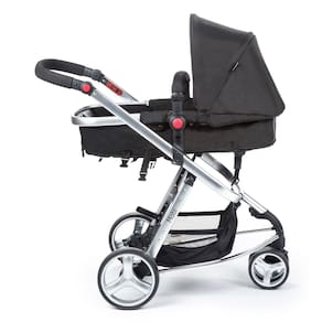 Ele tem estrutura de alumínio, design moderno e 3 rodas largas com freios centralizados. Possui assento reversível em múltiplas posições que o transforma em um aconchegante Moisés. É equipado com amplo cesto de compras, cinto de segurança de 5 pontos com protetores acolchoados e capota retrátil e removível.