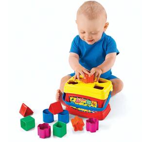 O Balde Primeiros Blocos vem com 5 opções de formas coloridas, com 2 unidades de cada, para o bebê brincar de encaixar. Cilindro, estrela, cubo, triângulo e sinal de adição.
