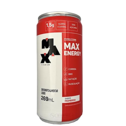 Bebida energetica max energy 269ml max titanium pre treino suplemento alimentar em liquido composicao do anuncio 01x bebida energetica max energy 269ml max titaniumo max energy e sua mais nova e depois do primeiro gole, tambem a preferida opcao de bebida energetica alem dos ativos comuns, ele conta com 1,5g de bcaa e zero acucar na formulacao voce pode consumi lo antes do seu treino, durante o trabalho, estudo, viagem e demais atividades do dia a dia.Ingredientesagua gaseificada, premix energetico taurina 1076mg , cafeina 94mg , inositol 53mg , sulfato de magnesio magnesio , nicotinamida vitamina b3 , pantotenato de calcio vitamina b5 , riboflavina vitamina b2 e cloridrato de piridoxina vitamina b6 , l leucina, l isoleucina, l valina, acidulante acido citrico, aromatizante, conservantes benzoato de sodio e sorbato de potassio, regulador de acidez citrato de sodio, edulcorante sucralose e corante caramelo iv. Nao contem gluten.