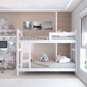 - Material da Estrutura: 100% MDF - Como os Móveis Chegarão na Minha Casa: Desmontados em caixas acompanhados de ferragens e manuais de montagem. - Grau de Dificuldade da Montagem: Médio - Sistema de Montagem: Cavilhas, parafusos e minifix - Observação: Objetos decorativos que aparecem nas imagens não acompanham o produto. - Recomendação de Manutenção: Usar pano seco, ou levemente umedecido. - Indicação de Uso: Quarto - Garantia (dias): 90 - Peso suportado na cama superior: 100 Kg - Peso suportado na cama inferior: 80 Kg - Escala de Brilho: Semi-Brilho - Acompanha: Beliche, Kit Ferragens e Manual de Montagem - Quantidade de Pés/Sapatas: 4 - Colchão Indicado: Solteiro (88 x 188 cm) - Colchão Indicado Cama Auxiliar: Não Acompanha - Acompanha Colchão: Não - Revestimento /Acabamento: Pintura UV - Classificação das Camas: Solteiro - Espessura da Estrutura: 15 mm - Linha ou Coleção: Aconchego - Tipo de cama: Beliche - Tamanho Da Cama: Solteiro - Montagem Invertida?: Não Pode ser Montado Invertido - Material dos Pés: MDF - Necessita de Montagem: Sim - Pés com regulagem de altura?: Não - Acompanha Cama Auxiliar: Não - Pode Ser Montado Invertido: Não - Possui Rodízios?: Não - Possui Espelho?: Não - Possui Vidro?: Não - Possui Gavetas?: Não - Possui Portas?: Não - Possui Prateleiras?: Não - Possui Puxadores?: Não - Possui Pés?: Sim - É frágil?: Não - Possui Ripamento?: Não - Acompanha Manual de Montagem: Sim - Possui Nicho?: Não