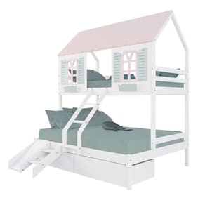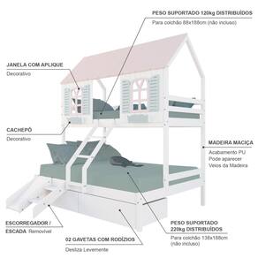 Diferenciais: Escada com Leve Curvatura, Casinha e Telhado com fechamento em MDF, Janela e Cachepô, 02 Gavetas, Kit Escada/Escorregador.