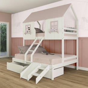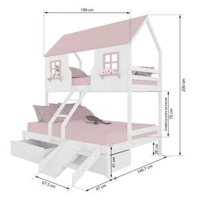Material Principal: Madeira Maciça | Cor Predominante: Branco/ Rosa | Necessita Montagem: Sim | Acompanha Colchão: Não | Tipo de Cama: Beliche Casal/ Solteiro | Altura: 230 | Largura: 146,7 | Comprimento: 199 | Peso: 110 | Peso máximo suportado: 120 e 220 | Cor Via: Branco | Peso com Embalagem: 110 | Comprimento com Embalagem: 192 | Largura com Embalagem: 30 | Altura com Embalagem: 30 | Tamanho da Cama: Beliche Casal/ Solteiro | Descrição do Tamanho: Beliche Casal/ Solteiro | Quantidade de Caixas: 06