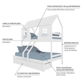 Diferenciais: Escada com Leve Curvatura, Casinha e Telhado com fechamento em MDF, Janela e Prateleira Decorativa, 02 Gavetas.
