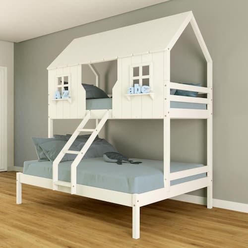 Diferenciais: Escada com Leve Curvatura, Casinha e Telhado com fechamento em MDF, Janela e Prateleira Decorativa.