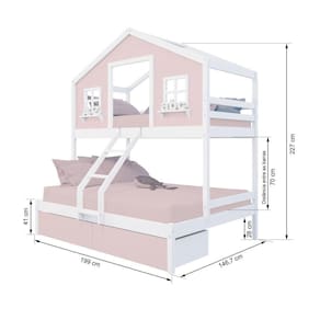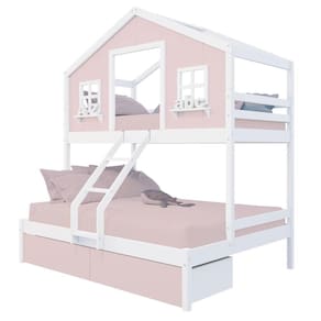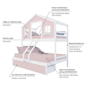 Material Principal: Madeira | Cor: Branco | Rosa | Necessita Montagem: Sim | Acompanha Colchão: Não | Tipo de Cama: Beliche Casal/Solteiro