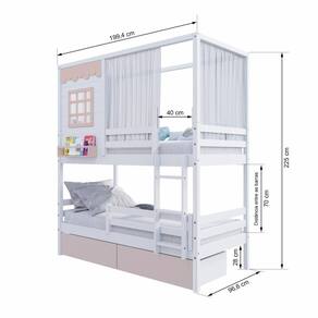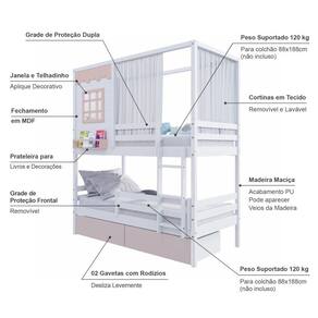 Material Principal: Madeira Maciça | Cor: Branco/ Rosa | Necessita Montagem: Sim | Acompanha Colchão: Não | Tipo de Cama: Beliche Solteiro