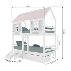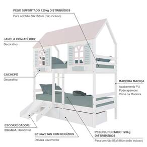 Diferenciais: Casinha e Telhado com fechamento em MDF, Janela e Cachepô, 02 Gavetas com Rodízios, kit Escada/Escorregador.