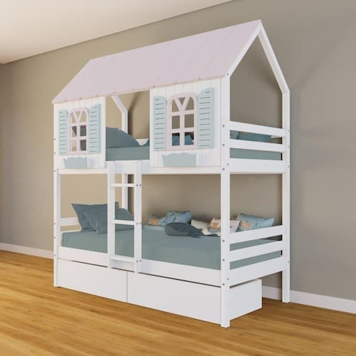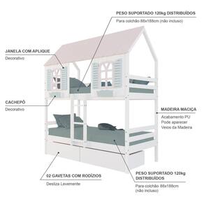 Material Principal: Madeira | Cor: Branco | Rosa | Verde | Necessita Montagem: Sim | Acompanha Colchão: Não | Tipo de Cama: Beliche Solteiro