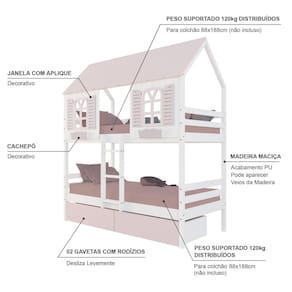 Diferenciais: Casinha e Telhado com fechamento em MDF, Janela e Cachepô, 02 Gavetas com Rodízios.