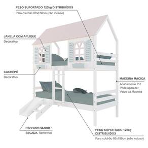 Peso Suportado: Cada cama suporta até120 kg, ideal para crianças, adolescentes e até um adulto durante a leitura de uma história à noite.