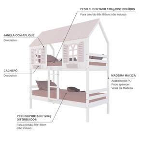 Material Principal: Madeira | Cor: Branco | Rosa | Necessita Montagem: Sim | Acompanha Colchão: Não | Tipo de Cama: Beliche Solteiro