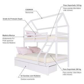 Diferenciais: Escada com Leve Curvatura, Grade de Proteção Dupla, 02 Gavetas, Casinha