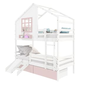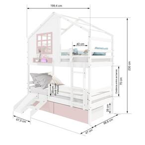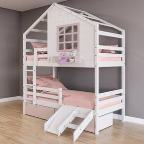 Diferenciais: Escada Fixa, Kit Escada/ Escorregador, 02 Gavetas, Grade de Proteção Removivel, Casinha com fechamento em MDF, Janela e Prateleira para Livros e Decoração, Montagem Reversível (Lado Direito ou Lado Esquerdo)