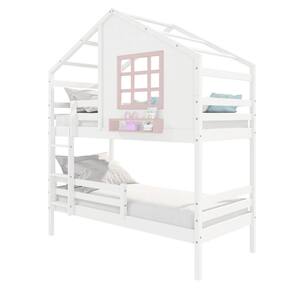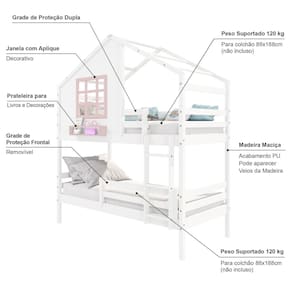 Diferenciais: Escada Fixa, Grade de Proteção Removivel, Casinha com fechamento em MDF, Janela e Prateleira para Livros e Decoração, Montagem Reversível (Lado Direito ou Lado Esquerdo)