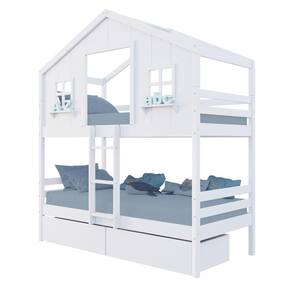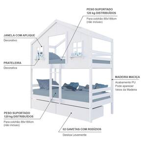 Diferenciais: Escada Fixa, Casinha com fechamento em MDF, Janela e Prateleira Decorativa, 02 Gavetas com Rodízios.