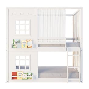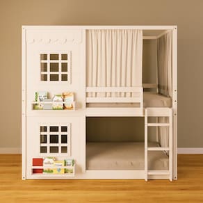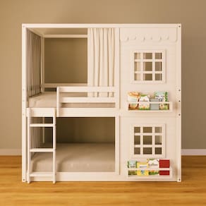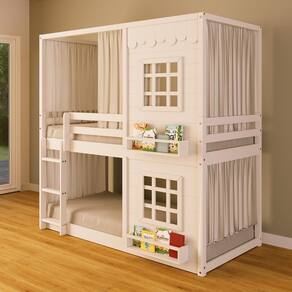 Diferenciais: Escada Fixa, Cortina, Casinha com fechamento em MDF, 02 Janelas e Prateleira para Livros e Decoração, Montagem Reversível (Lado Direito ou Lado Esquerdo)