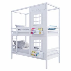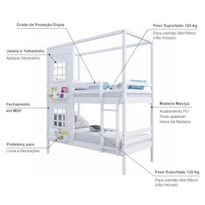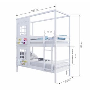 Diferenciais: Escada Fixa, Casinha com fechamento em MDF, 02 Janelas e Prateleira para Livros e Decoração, Montagem Reversível (Lado Direito ou Lado Esquerdo)