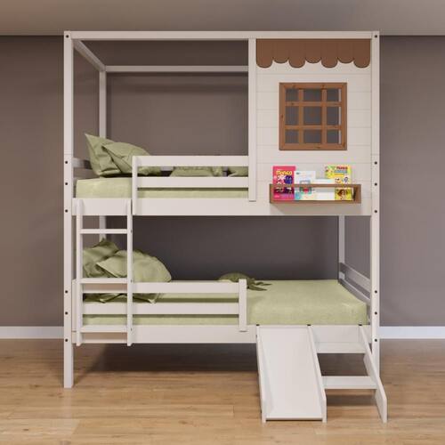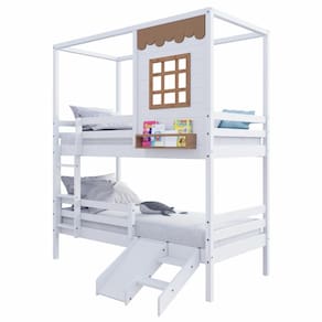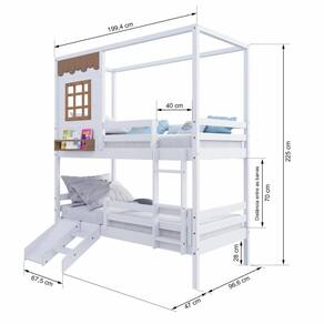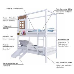 Diferenciais: Escada Fixa, Grade de Proteção Removível, Kit Escada/ Escorregdor, Casinha com fechamento em MDF, Janela e Prateleira para Livros e Decoração, Montagem Reversível (Lado Direito ou Lado Esquerdo)