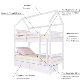 Diferenciais: Escada Fixa, Grade de Proteção Dupla, 02 Gavetas, Casinha.